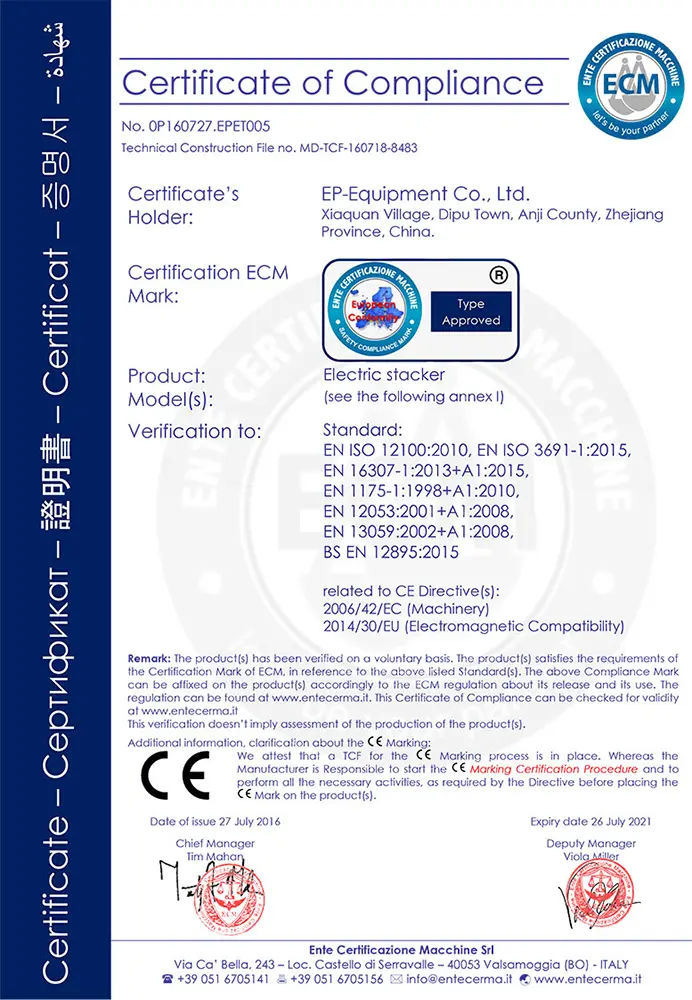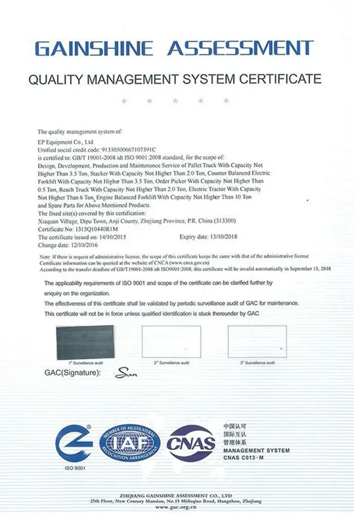 На всю складскую технику бренда EP-Equipment действует гарантия на заводской брак 2 года или 2000 моточасов (смотря что наступит раньше), а на АКБ — до 5 лет. Вы можете расширить свою гарантию с двух до четырёх лет, если при покупке техники заключите с нами дополнительный договор на сервисное обслуживание техники.